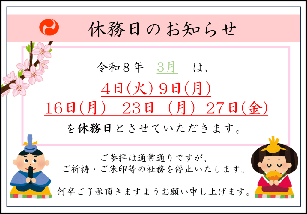 ぜひ当神社へ足をお運びいただき、静かな空間の中をゆったりと心穏やかにご参拝くださいませ。