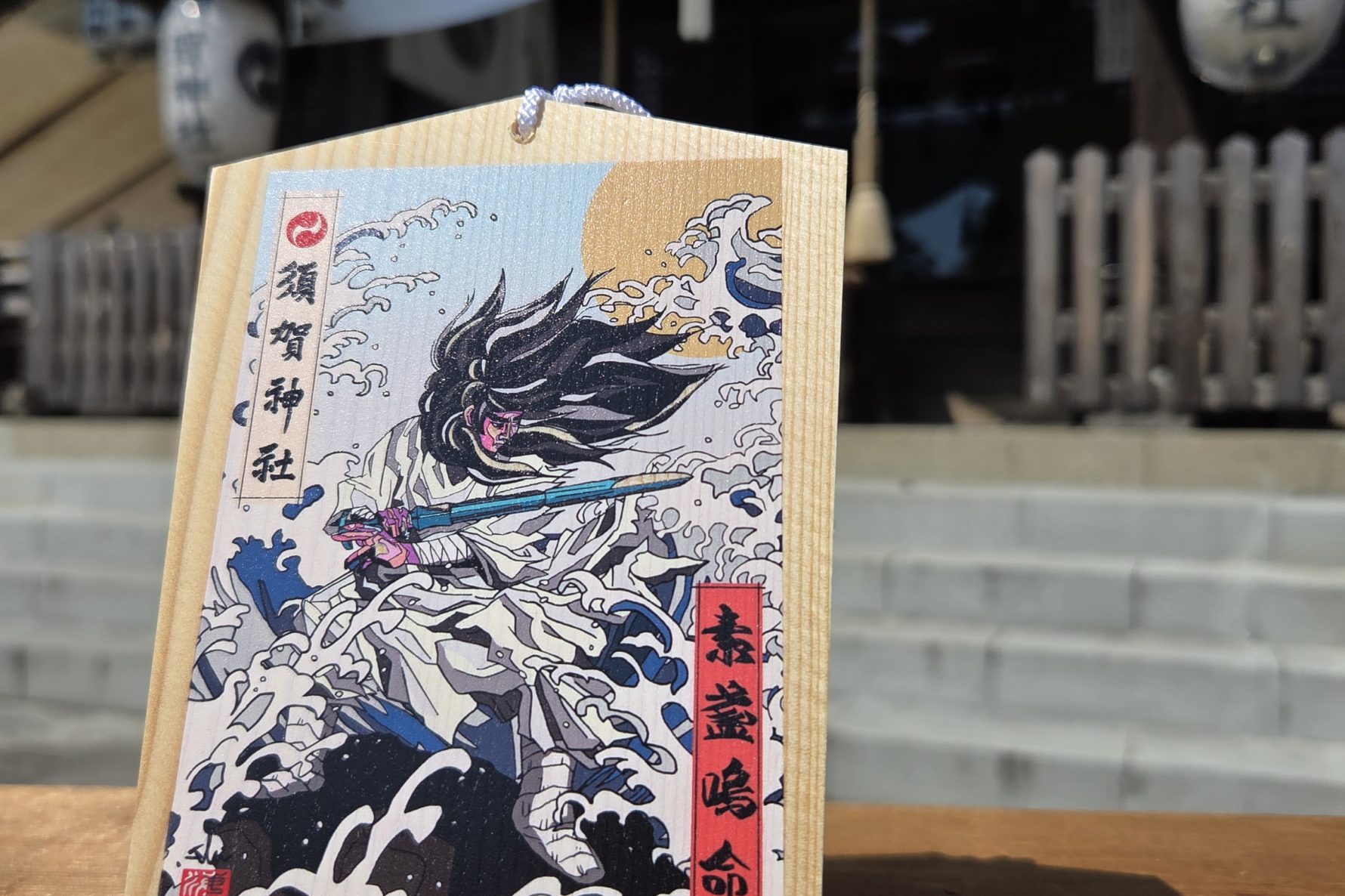 須賀神社社務所にて、デジタルアーティストのebi氏(@ebi_artstudios )により描かれた当社の主祭神「素盞嗚命(スサノオノミコト)」の絵馬を頒布しております。
